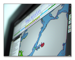 While reviewing the recorded video the cursor on the graph and map is updated to indicate the current location of the fishing vessel and the data captured at that point.