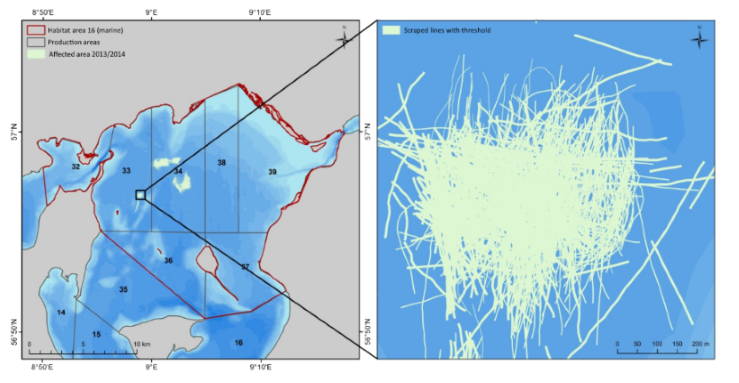 Close up of a fished area in a Natura 2000 area in Løgstør Bredning (Denmark). For more information, view the report on impact assessment authored by DTU Aqua.